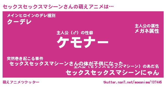 | 女子向けラノベタイトル風あだ名 | 『誰かこのセックスセックスマシーンを説明してください! ~契約から始まるウェディング~』 |