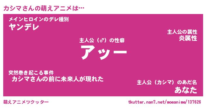 | 男性向けラノベタイトル風あだ名 | 『カシマアートオンライン』 |