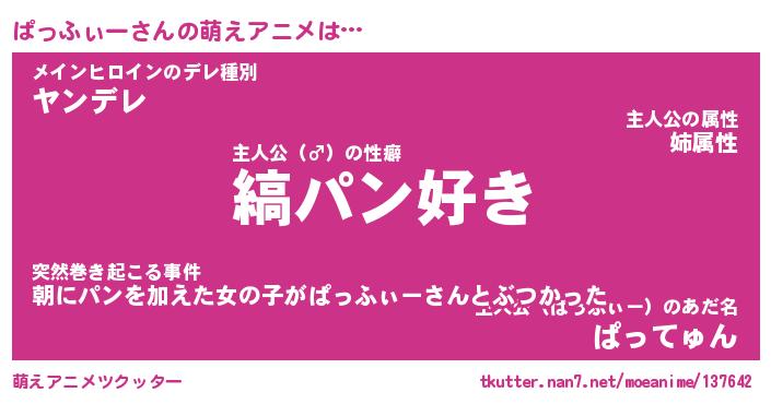 | 男性向けラノベタイトル風あだ名 | 『ぱっふぃーの憂鬱』 |