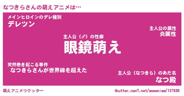 | ファンタジー風あだ名 | 『ナツフェル』『エターナルナツキラー』 |