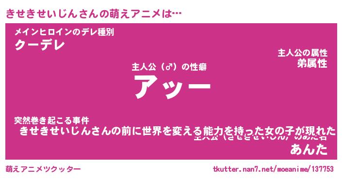 | 肩書あだ名 | 『きせきせいじん御曹司』 |