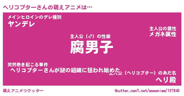 | 男性向けラノベタイトル風あだ名 | 『ヘリコプターアートオンライン』 |