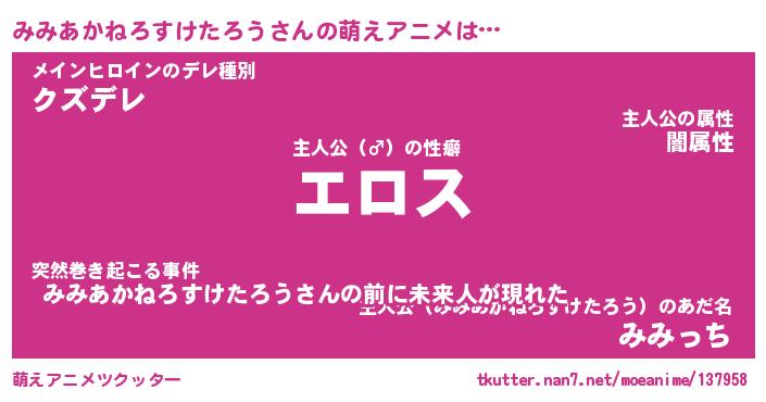 | 女子向けラノベタイトル風あだ名 | 『誰かこのみみあかねろすけたろうを説明してください! ~契約から始まるウェディング~』 |