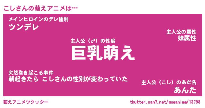 | 男性向けラノベタイトル風あだ名 | 『こしの憂鬱』『ノーゲーム・ノーコシ』 |