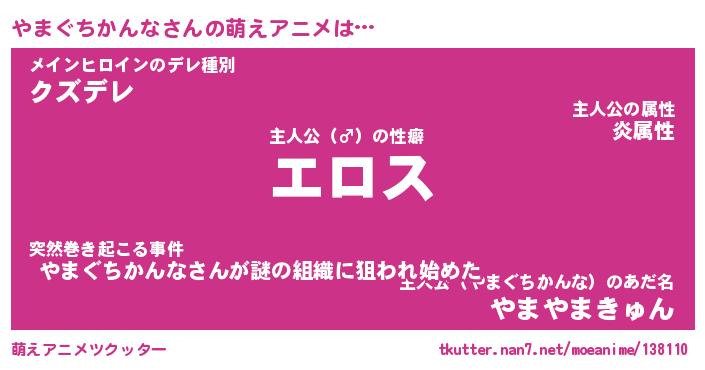 | 男性向けラノベタイトル風あだ名 | 『ヤマグチカンナアートオンライン』 |