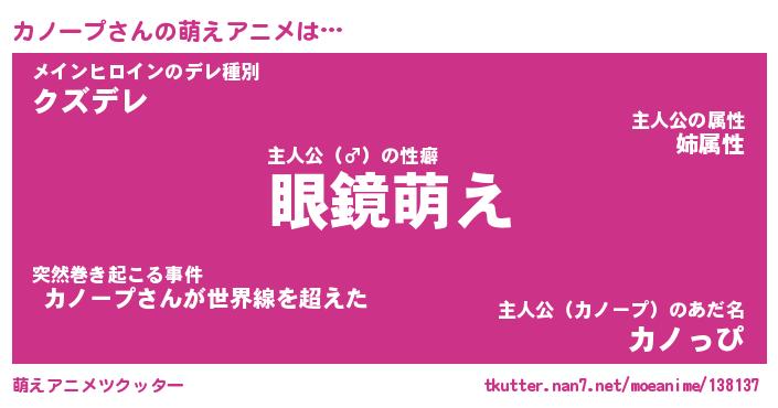 | 意味不明あだ名 | 『ペロリンカノープ』『永久保存カノープ』 |