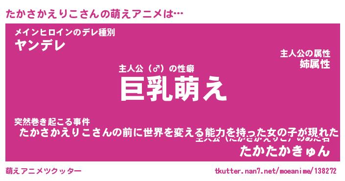 | 男性向けラノベタイトル風あだ名 | 『たかさかえりこの憂鬱』 |
