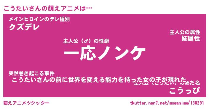 | 男性向けラノベタイトル風あだ名 | 『コウタイアートオンライン』 |