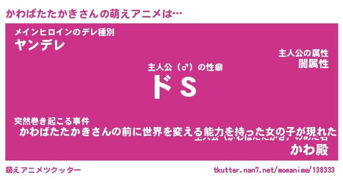 | 男性向けラノベタイトル風あだ名 | 『かわばたたかきの憂鬱』 |