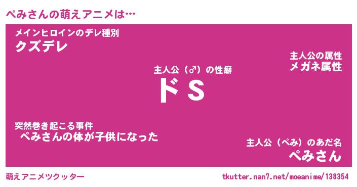 | 男性向けラノベタイトル風あだ名 | 『ぺみの憂鬱』 |