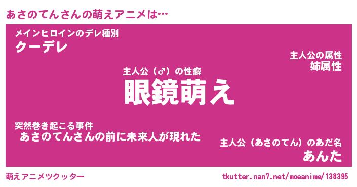 | ヒーロー風カッコイイあだ名 | 『スーパーアサノテン』『天弓騎士アサ』 |