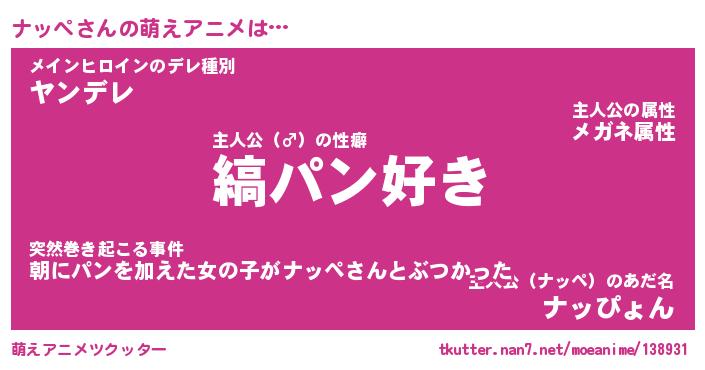 | 男性向けラノベタイトル風あだ名 | 『ナッペの憂鬱』 |
