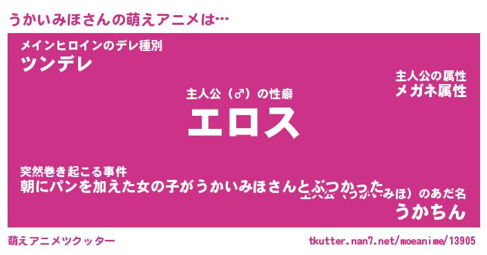 | 男性向けラノベタイトル風あだ名 | 『ウカイミホアートオンライン』 |
