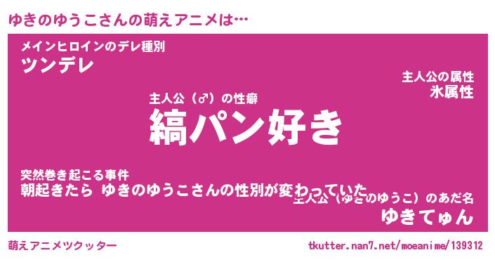 | 女子向けラノベタイトル風あだ名 | 『(仮)ゆきのゆうこのやんごとなき事情』 |