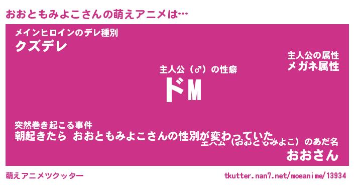 | 男性向けラノベタイトル風あだ名 | 『おおともみよこの憂鬱』 |