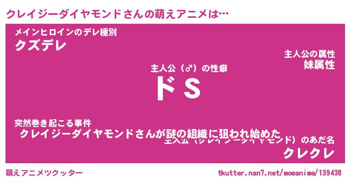| 男性向けラノベタイトル風あだ名 | 『クレイジーダイヤモンドの憂鬱』 |