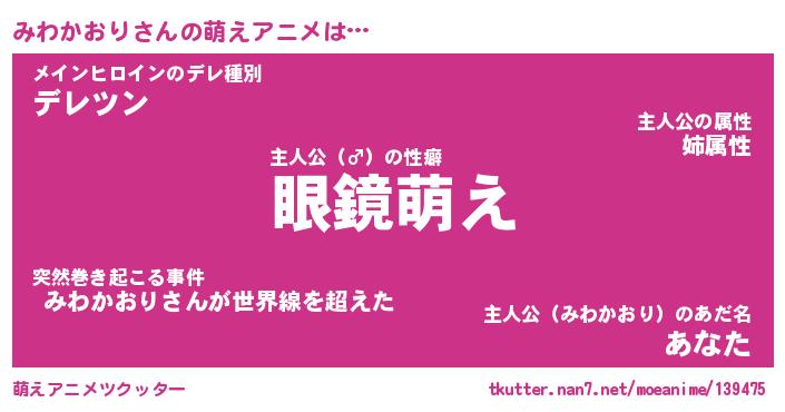 | 男性向けラノベタイトル風あだ名 | 『みわかおりの憂鬱』 |