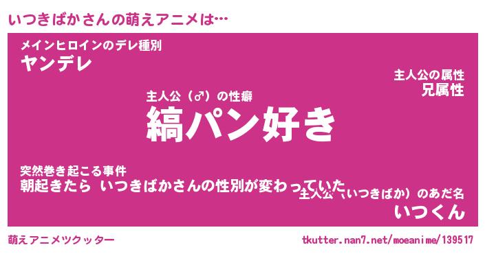 | 女子向けラノベタイトル風あだ名 | 『(仮)いつきばかのやんごとなき事情』 |