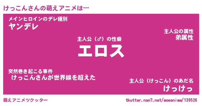 | ファンタジー風あだ名 | 『ケッフェル』『エターナルケッコンー』 |