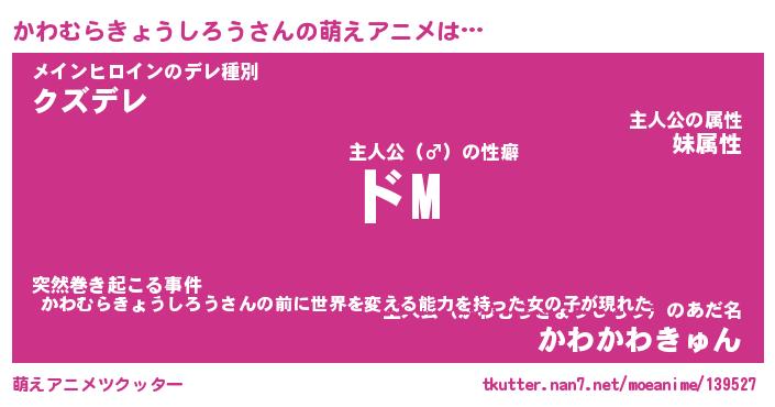 | 女子向けラノベタイトル風あだ名 | 『(仮)かわむらきょうしろうのやんごとなき事情』 |