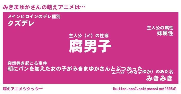 | ヘコむあだ名 | 『みきにゅー』『酢こんぶ』 |