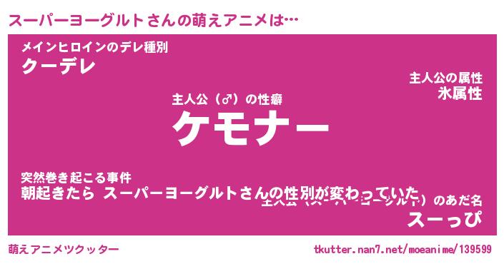 | 女子向けラノベタイトル風あだ名 | 『誰かこのスーパーヨーグルトを説明してください! ~契約から始まるウェディング~』 |