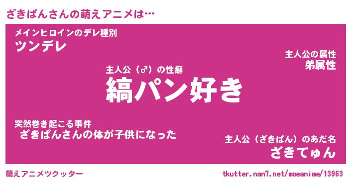 | 男性向けラノベタイトル風あだ名 | 『ざきぱんの憂鬱』 |
