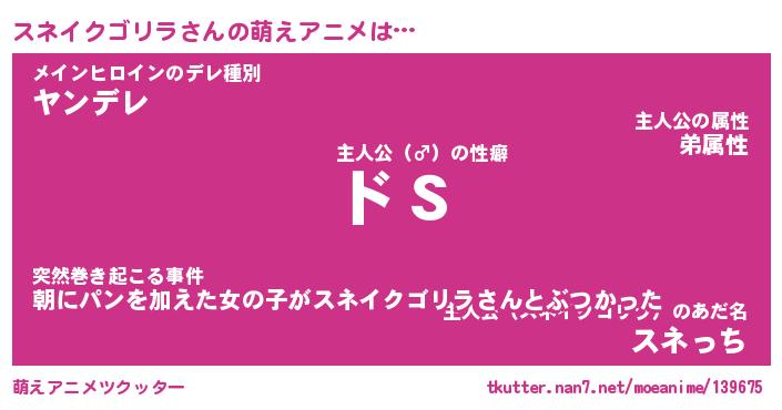 | 男性向けラノベタイトル風あだ名 | 『スネイクゴリラの憂鬱』 |