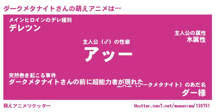 | 男性向けラノベタイトル風あだ名 | 『ダークメタナイトアートオンライン』 |