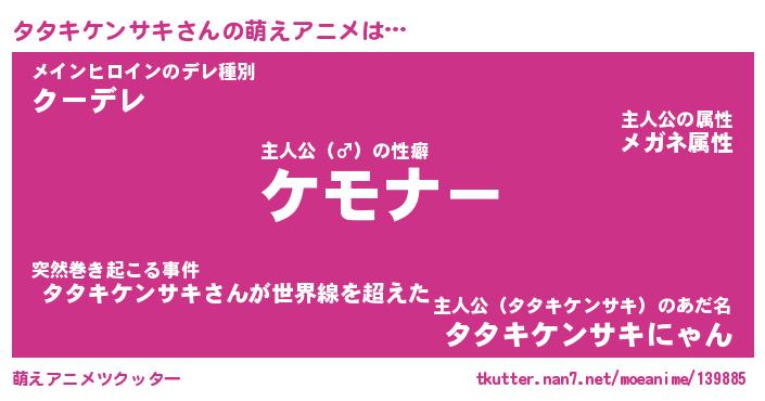 | 男性向けラノベタイトル風あだ名 | 『タタキケンサキアートオンライン』 |
