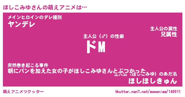 | ファンタジー風あだ名 | 『ホシフェル』『エターナルホシコミユー』 |