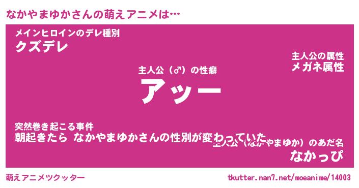 | 女子向けラノベタイトル風あだ名 | 『誰かこのなかやまゆかを説明してください! ~契約から始まるウェディング~』 |