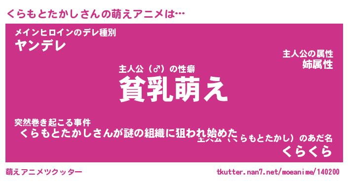 | 男性向けラノベタイトル風あだ名 | 『くらもとたかしの憂鬱』 |