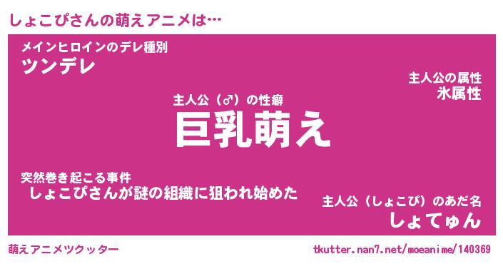 | 男性向けラノベタイトル風あだ名 | 『しょこぴの憂鬱』 |