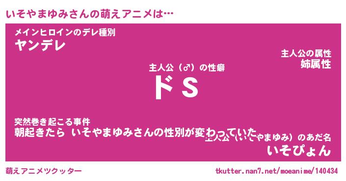 | 男性向けラノベタイトル風あだ名 | 『いそやまゆみの憂鬱』 |