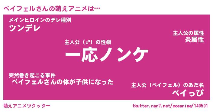 | 男性向けラノベタイトル風あだ名 | 『ベイフェルアートオンライン』 |