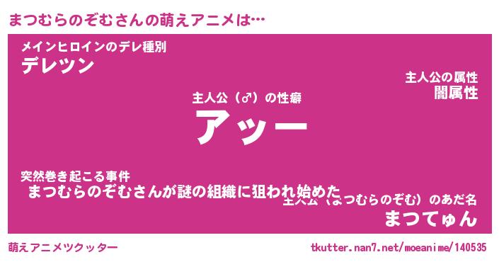 | 女子向けラノベタイトル風あだ名 | 『誰かこのまつむらのぞむを説明してください! ~契約から始まるウェディング~』 |