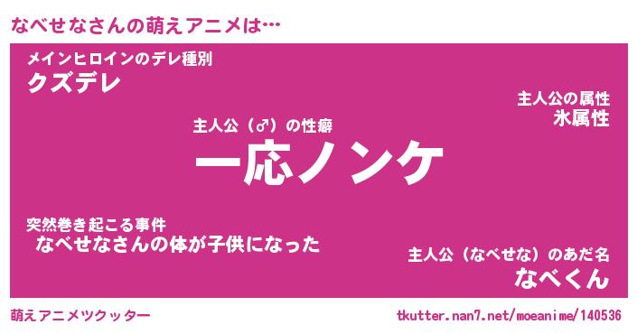 | 男性向けラノベタイトル風あだ名 | 『ナベセナアートオンライン』 |
