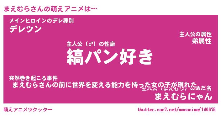 | 女子向けラノベタイトル風あだ名 | 『(仮)まえむらのやんごとなき事情』 |