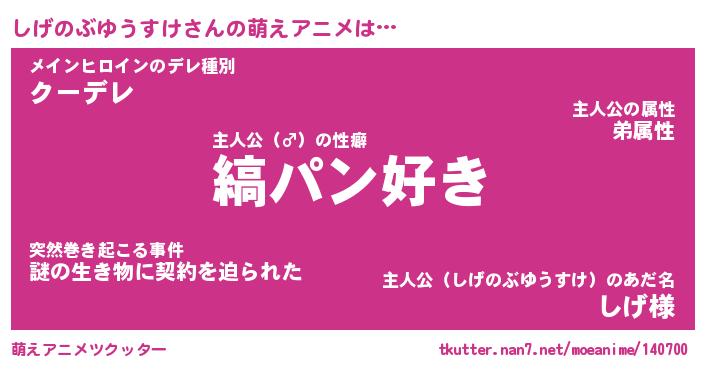 | 男性向けラノベタイトル風あだ名 | 『しげのぶゆうすけの憂鬱』 |