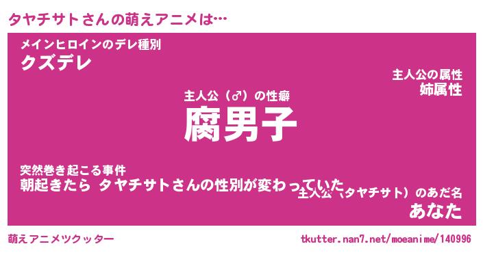 | 男性向けラノベタイトル風あだ名 | 『タヤチサトアートオンライン』 |