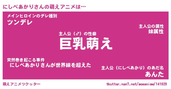 男性向けラノベタイトル風あだ名 | 『にしべあかりの憂鬱』 |
