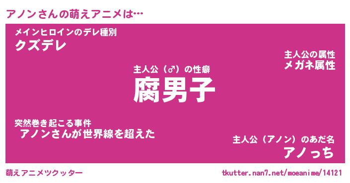 | 胡散臭い通販商品みたいなあだ名 | 『モテモテ間違いなしブレスレット…その名も「アノン」』 |