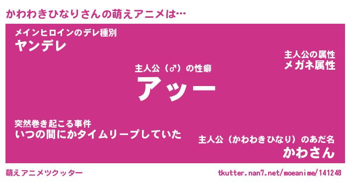 | 女子向けラノベタイトル風あだ名 | 『誰かこのかわわきひなりを説明してください! ~契約から始まるウェディング~』 |