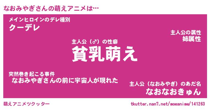 | 男性向けラノベタイトル風あだ名 | 『なおみやぎの憂鬱』 |