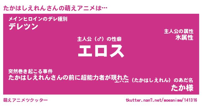 | 女子向けラノベタイトル風あだ名 | 『誰かこのたかはしえれんを説明してください! ~契約から始まるウェディング~』 |