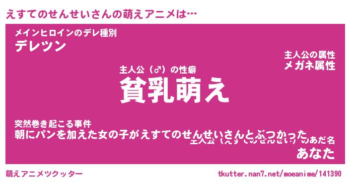| 男性向けラノベタイトル風あだ名 | 『えすてのせんせいの憂鬱』 |