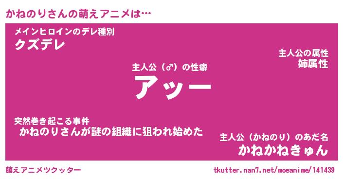 | 男性向けラノベタイトル風あだ名 | 『カネノリアートオンライン』 |