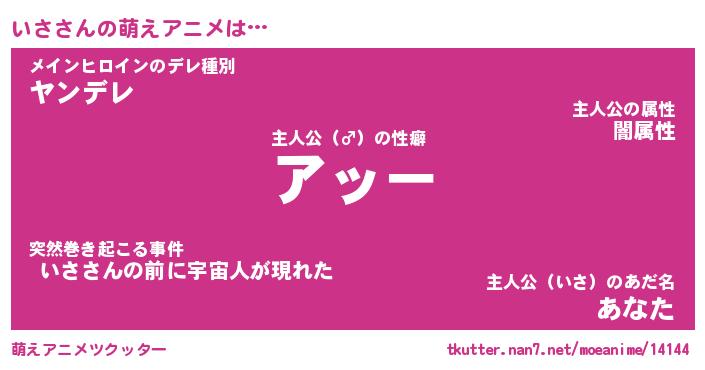 | 男性向けラノベタイトル風あだ名 | 『イサアートオンライン』 |