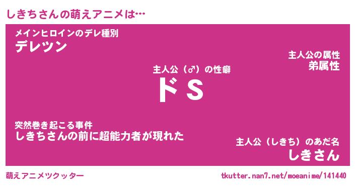 | 男性向けラノベタイトル風あだ名 | 『しきちの憂鬱』 |